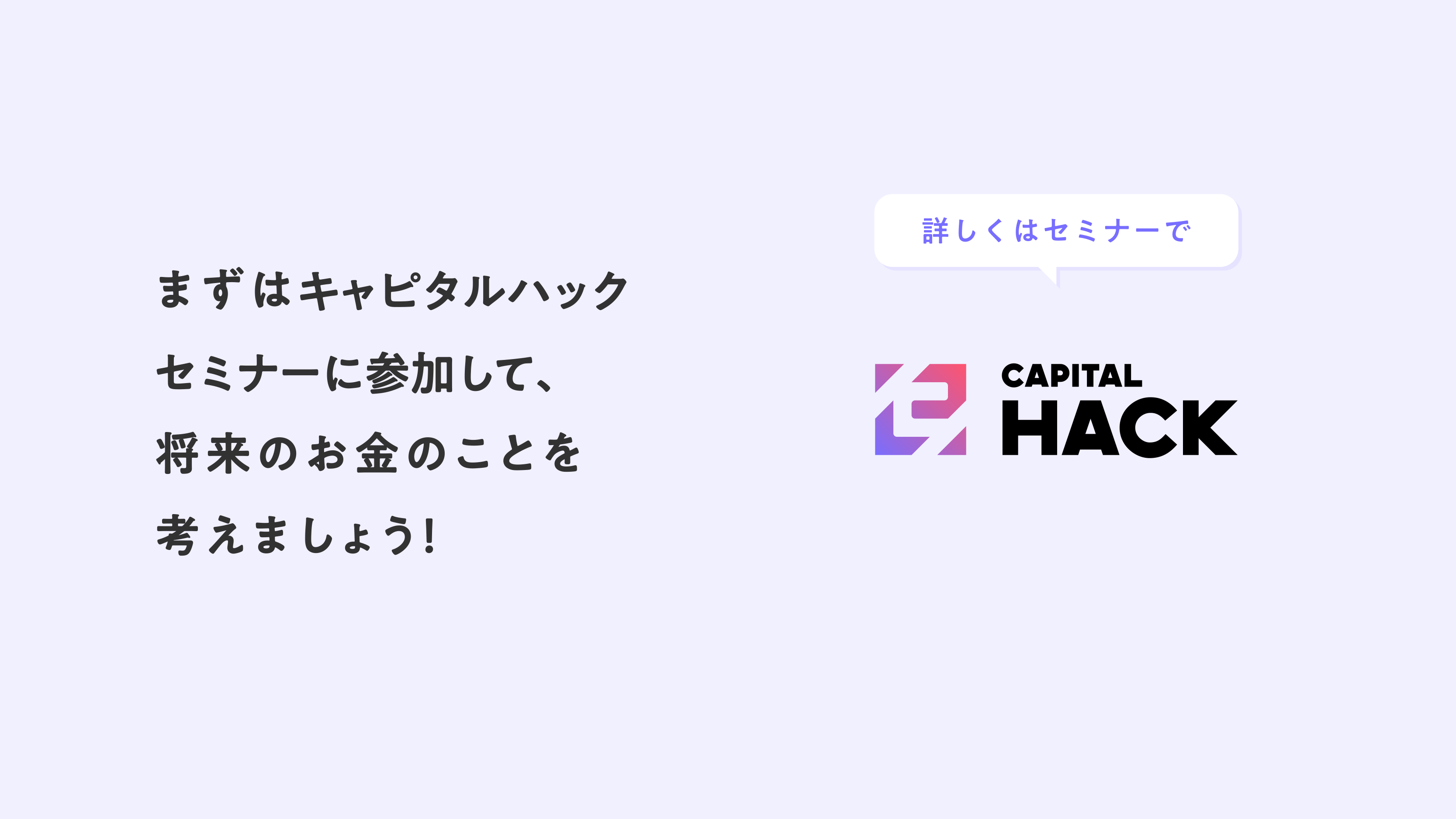 キャピタルハックでは、随時無料のセミナーを開催中。一方的な説明の強要ではなく、対話形式で疑問・不明点にお答えしながら資産形成のヒントや「お金」に関する知識や手法をオンラインでご紹介します。